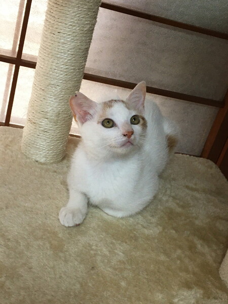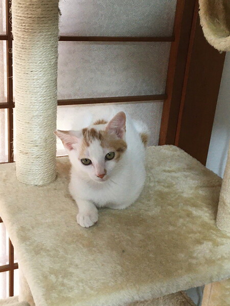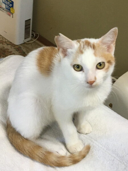 | 特徴(性格など) | 茶白の男の子です。食べることと遊ぶことが大好きです。 とても人慣れして、抱っこも好きです。 私の後を追いかけて、まとわりついたりします。 一緒にいる猫ちゃんたちとも仲良く遊びます。 8月1日辺りに生まれたと推測されます。 |