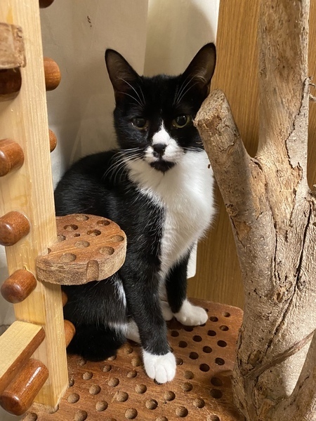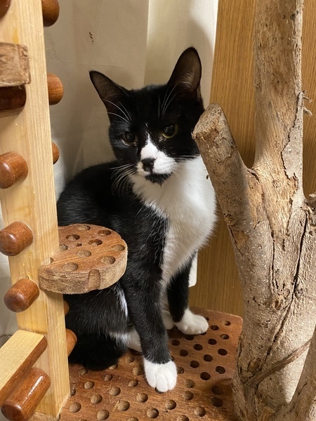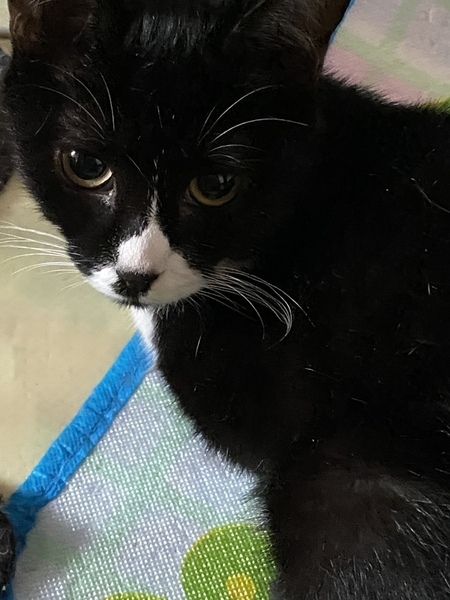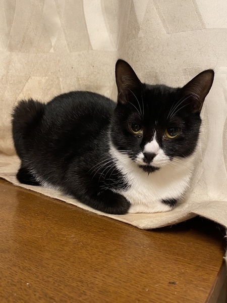 | 特徴(性格など) | 白と黒の柄のおとなしい女の子です。 他の猫とも仲良くしていますが、落ちついています。でも、猫じゃらしで遊ぶのは大好きで、その時は元気いっぱい遊んでいます。同じ白黒柄の子とは特に仲良しです。 エイズ、白血病検査は陰性です。 |