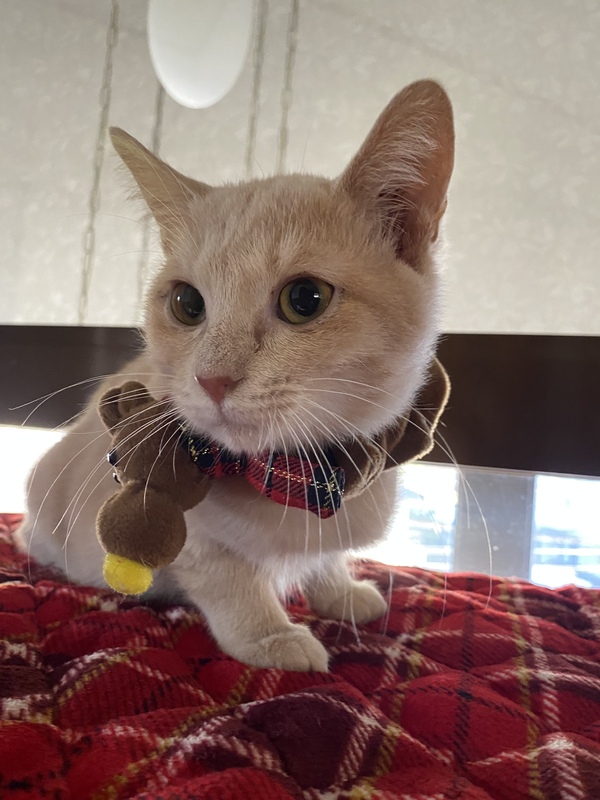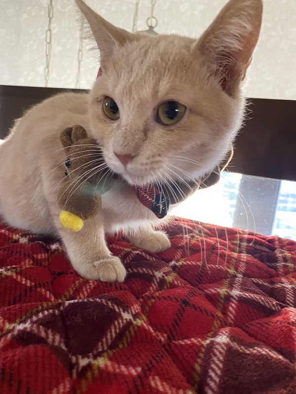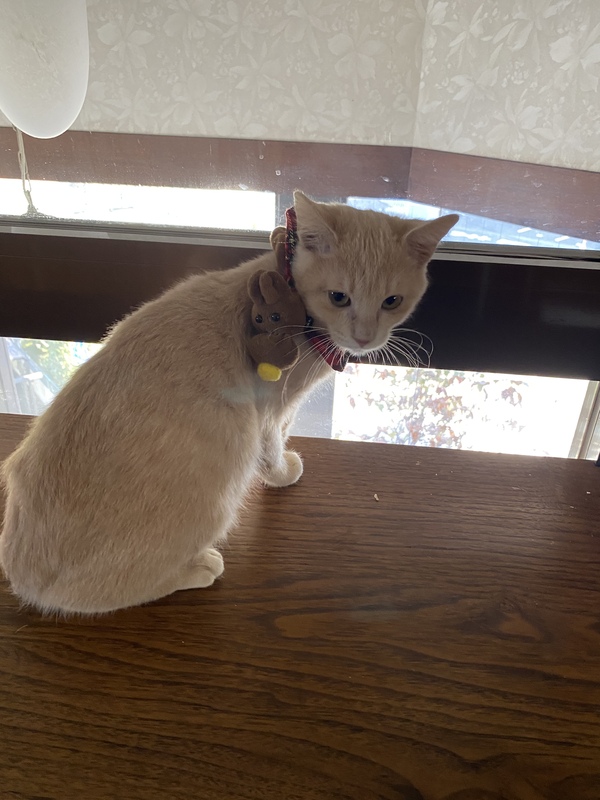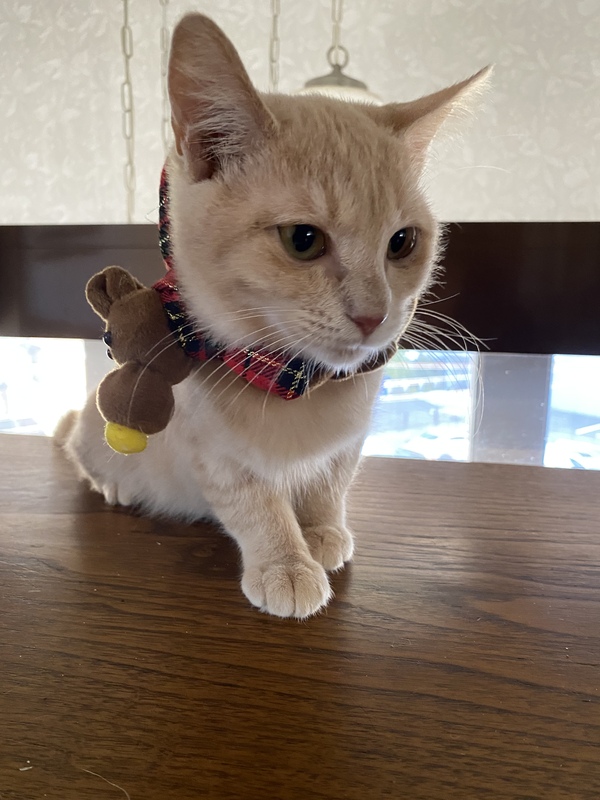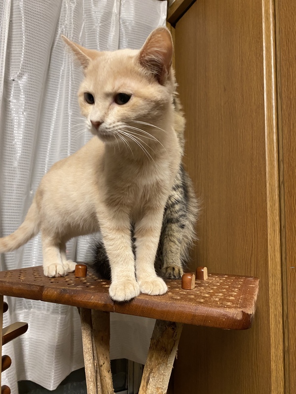 | 特徴(性格など) | フォーンの綺麗な毛並みの男の子です。 短毛ですが、ふんわりしています。 まだ小さいので、好奇心旺盛ですが、穏やかで落ち着いた子です。人にも慣れていますし、色々な猫とも仲良くしています。 |