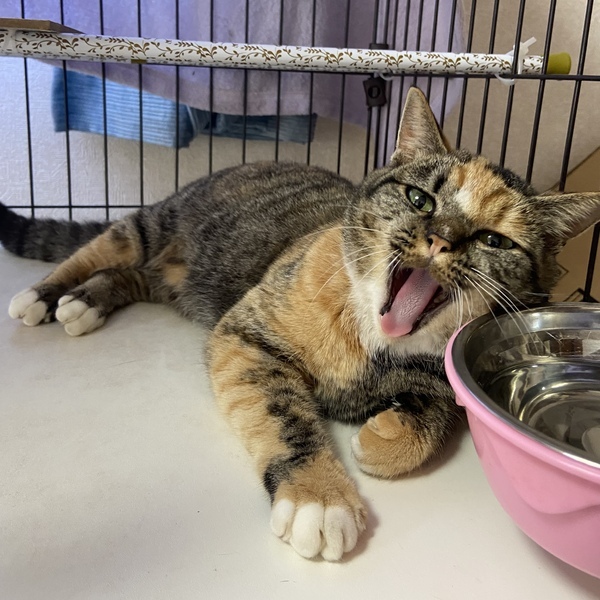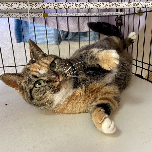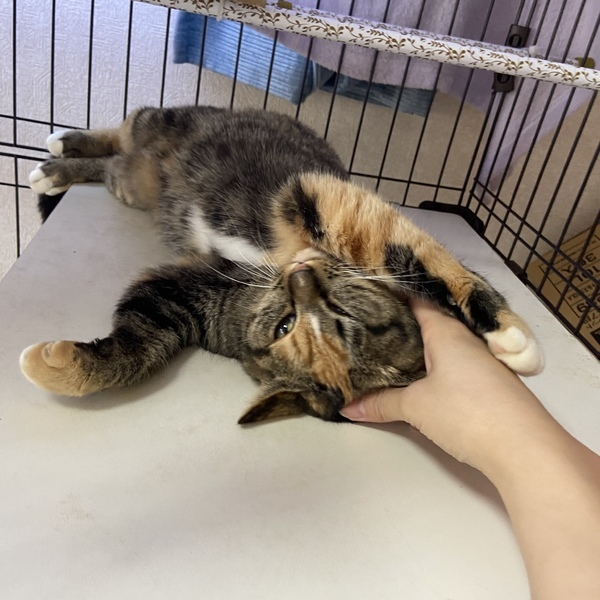 | 特徴(性格など) | とてもマイペースです! エイズ白血病陰性、よく食べ元気です。 お手手の先が白くお洒落なシマシマの三毛さん 。顔がまんまるで、毛並みもモコモコで美人です! 撫でてもらうのが大好きでゴロゴロくねくねとろけちゃいます。 控えめですが、おもちゃも大好きです! 動画のさくちゃんも可愛いので是非見てみてください! |