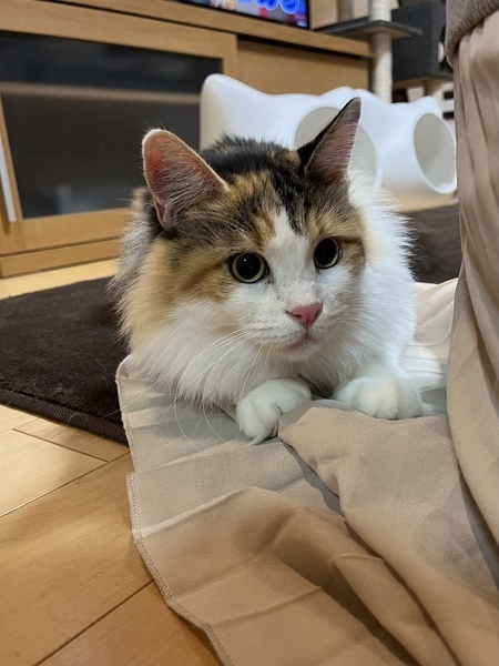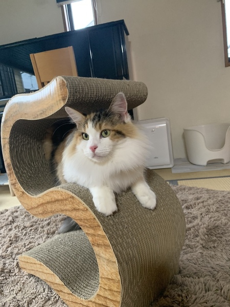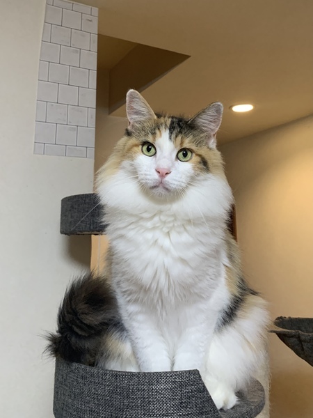 | 特徴(性格など) | 毛色はキャリコ 大型の猫ちゃんです 性格はツンデレです 撫でられるのは好きですが、抱っこは好きではないようです 嬉しそうにオモチャで遊ぶ姿が可愛いです |