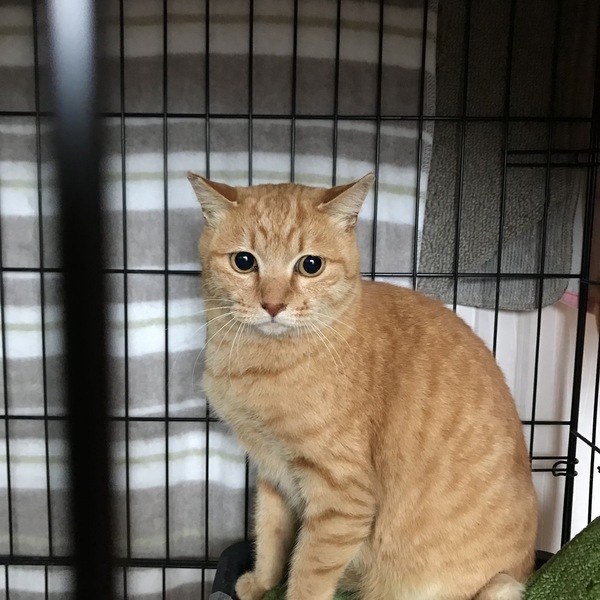 | 特徴(性格など) | 茶トラのおっとりした男の子です。3歳と若いので人馴れもしやすく家庭猫としてすぐに甘えてくれるかなと思います。女の子のようなかわいらしい顔の子です。 猫エイズ 陰性 白血病 陰性 保護時に餌やりさんがいたのですがワクチンについてが不明ですのでしばらく後に受けさせる方が良いかと思っています。 |