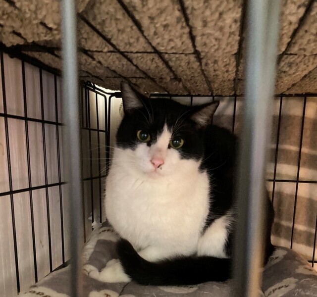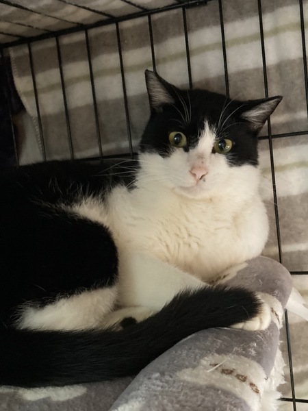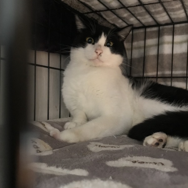 | 特徴(性格など) | 野良でいたときに足を怪我していたため保護に至りました。左前足の指の一部が欠損していましたが治療を行い今は良くなり家庭猫と生活するには問題なく暮らしています。猫にも人にも優しいハチワレの男の子です。大人しく他の猫たちともすぐに仲良くなれる子です。入ってきて間もない子たちもこのジェイの近くに寄り添っていって周りを安心させるタイプの子なのかなと思います。 | ||