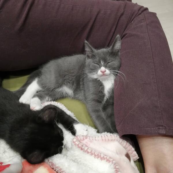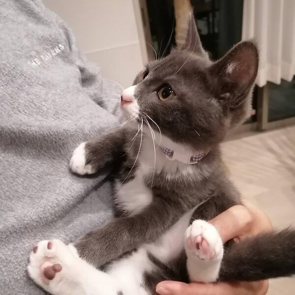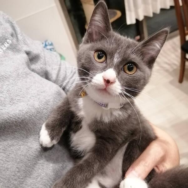 | 特徴(性格など) | ■色柄・見た目 ・灰白。前足は短い靴下。後ろ足は長い靴下です。 ・細身でがっちり。大人になったらガチムチになるかも知れません。 ・尻尾は長尾。細くて長いです。 ・肉球は4つともピンクとあずきのぶちです。 ■性格 ・人間大好き。撫でられるとゴロゴロ言います。 ・自分から来ることはあまりないですが、人間の膝の上で寝たりくつろいだりも出来ます。 ・月齢的な部分もありますが、めちゃくちゃ活発です。 いたずらしまくり。 (月齢だけではなく、性格的な部分もあるかも知れないので、長期に渡って活発&いたずらっ子な可能性があります) ・猫は好きなので、先輩猫さんがいてもOKです。 ■エイズ・白血球 ともに陰性。 |