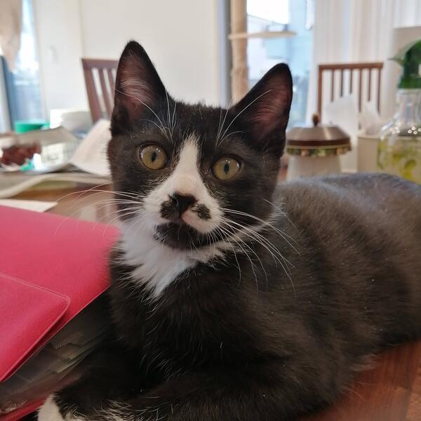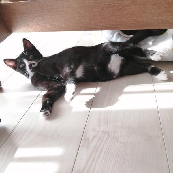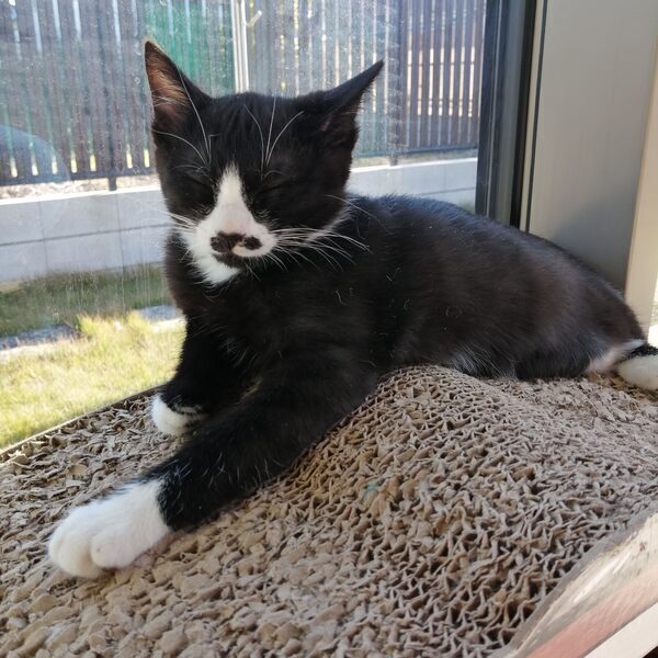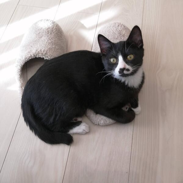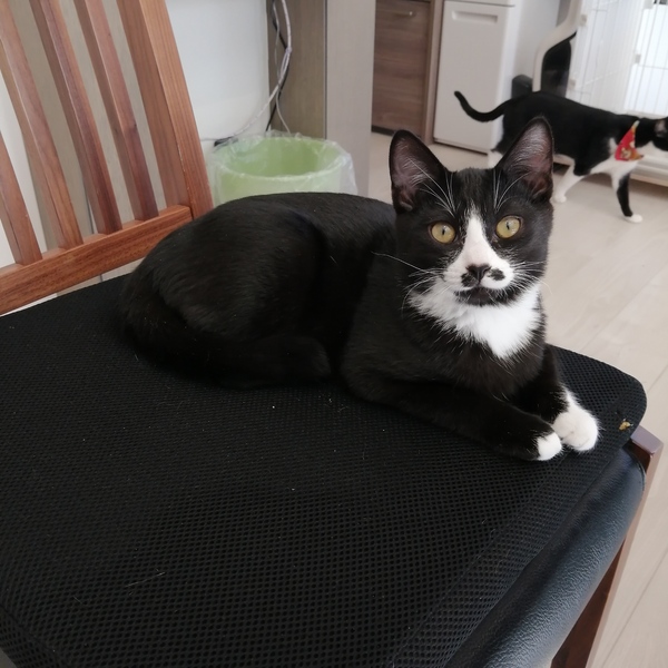 | 特徴(性格など) | ■色柄・見た目 ・お顔の柄がとてもキュートです。伊達巻きかなるとのようです。 ・黒白。前脚・後ろ脚とも、全部短い靴下。 ・がっちり。現在2.9kgほど。兄弟の中で一番、体重・骨格ともにしっかりしているので、大きい猫になるかも知れません。 ・尻尾は中尾~長尾の間くらい。太めで、先端は鍵しっぽになっています。 ・肉球は4つとも濃いめのあずき色です。 ■性格 ・人間大好き。撫でられるとゴロゴロ言います。 ・自分から人間の膝の上に来て、寝たりくつろいだりも出来ます。 ・月齢的な部分もありますが、めちゃくちゃ活発です。 いたずらしまくり。 (月齢だけではなく、性格的な部分もあるかも知れないので、長期に渡って活発&いたずらっ子な可能性があります) ・猫は好きなので、先輩猫さんがいてもOKです。 ■エイズ・白血球 ともに陰性 |