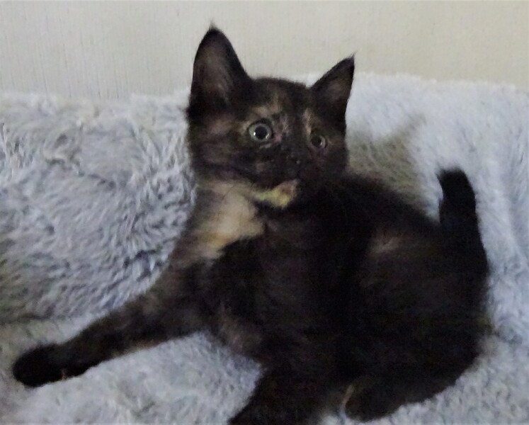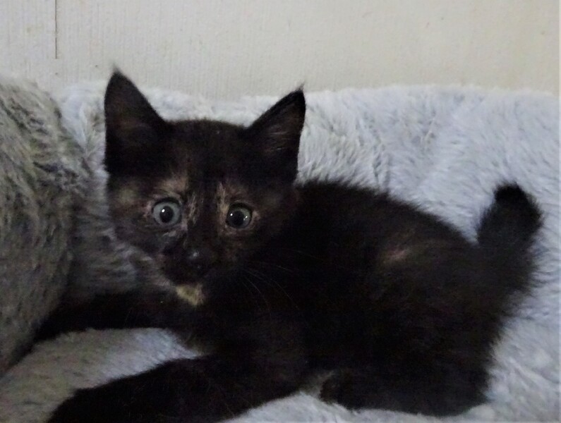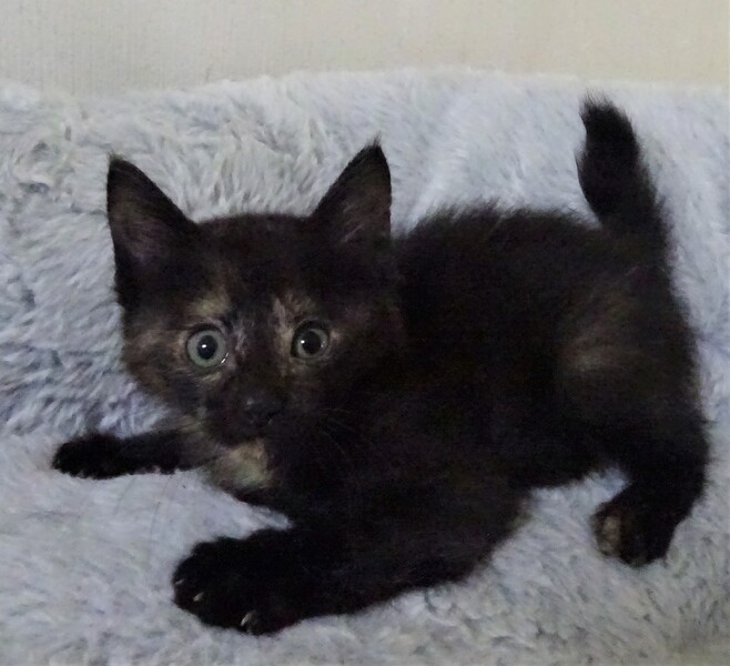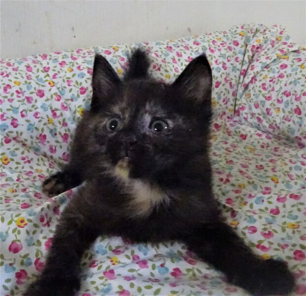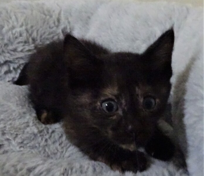 | 特徴(性格など) | 仮名: 揚羽ちゃん(メス) 毛色: 黒っぽいさび猫 性格: まだ小さく、はっきりとした個性はまだわかりませんが、姉妹の中では一番好奇心旺盛で、活発な方です。 姉妹とはよく遊んでいますが、まだ大人猫とは遊んでいませんので、他猫とどうかがわかりません。 小さいので大丈夫とは思います。 ミルクで育っているので、人馴れはしています。 威嚇もありません。 すんなり抱っこ出来ます。 優しい先住猫がいるお家でも、きっと大丈夫と思います。 |