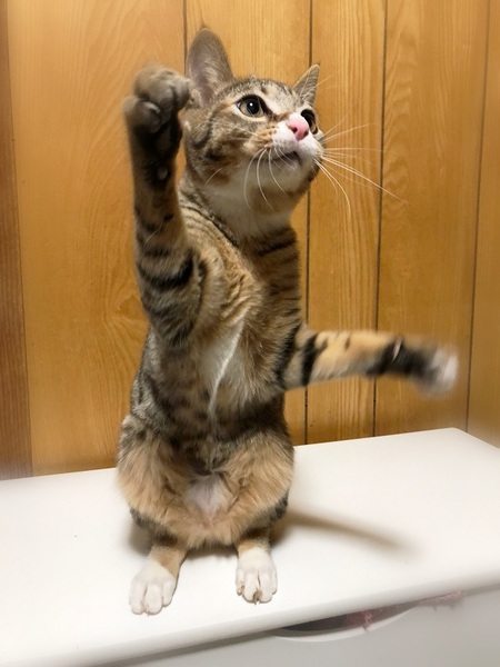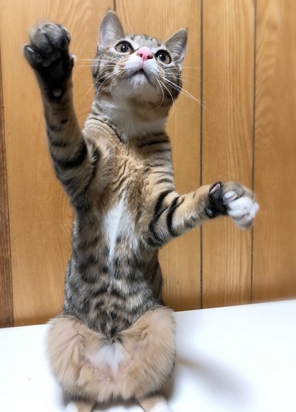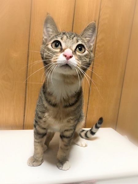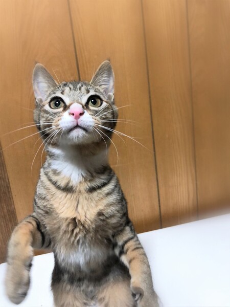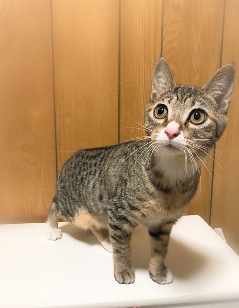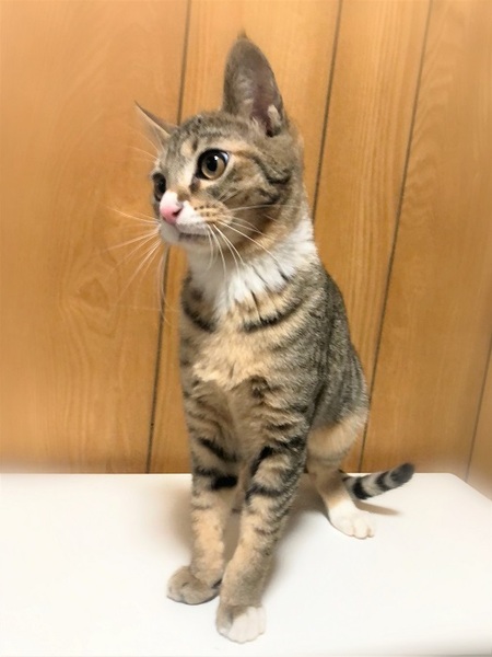 | 特徴(性格など) | アーモンド形・大きな目の女の子 お腹の模様が何だか個性的です。 環境に慣れるまで、少し時間が必要です。 ご飯と遊ぶ事が大好きで、今は遊ぶ事に夢中です。 特にけりぐるみやボールのオモチャが好きで、楽しくて仕方ない様子です。 |