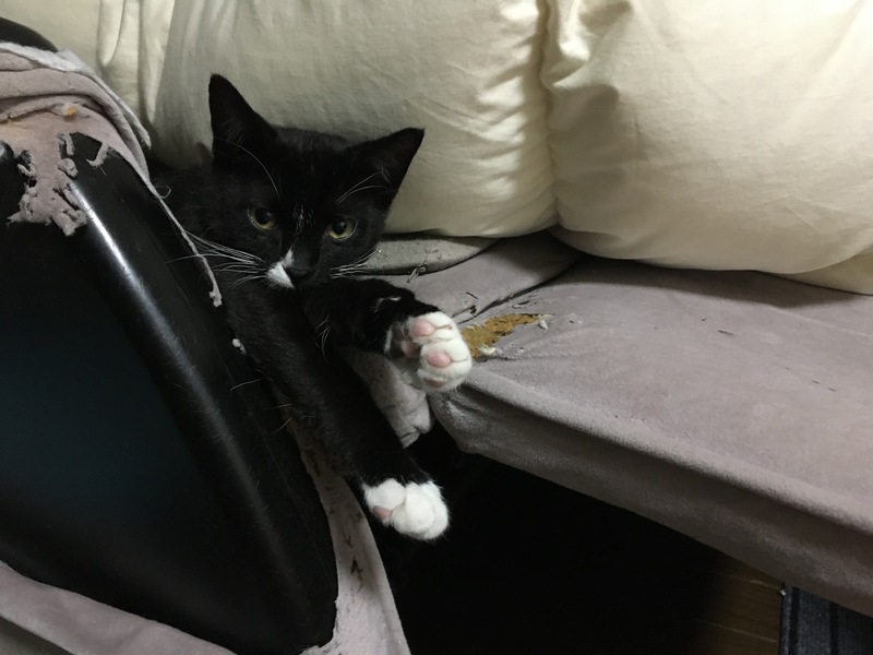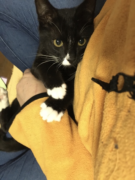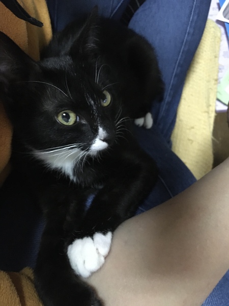 | 特徴(性格など) | 黒に白手袋とソックスの可愛い柄です。 お鼻にも白いポイントと白いシャツとおパンツも履いてます。 人懐こくて超元気いっぱいのヤンチャ坊主。 甘えん坊で可愛い声でよくおしゃべりして名前を呼ぶとお返事します。 抱っこはイヤだけどお膝は大好き。 ずーっと乗ってます。 まだ乳歯で生え変わりの時期が近いのかちょっと咬み癖があります。 人間の髪の毛をトリミングして咬むのでちょっと困ったクセがあります。 元気がいいので人間登りからの肩乗りもします。 うまくいけば肩乗り猫になるかもしれません。 |