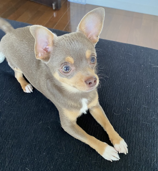 | 特徴(性格など) | 犬種:チワワ(スムース) 毛色:イザベラ タン(薄い栗色) 性格・特徴 健康で活気があり元気な男の子です。 初めてのことは怯えることもありますがすぐに慣れます。散歩もしています。排泄はトイレシートで行い散歩中に屋外でもします。 お留守番も静かに待っていられます。 ★混合ワクチン、狂犬病ワクチン済み 去勢済み(11月)、血統書あり |