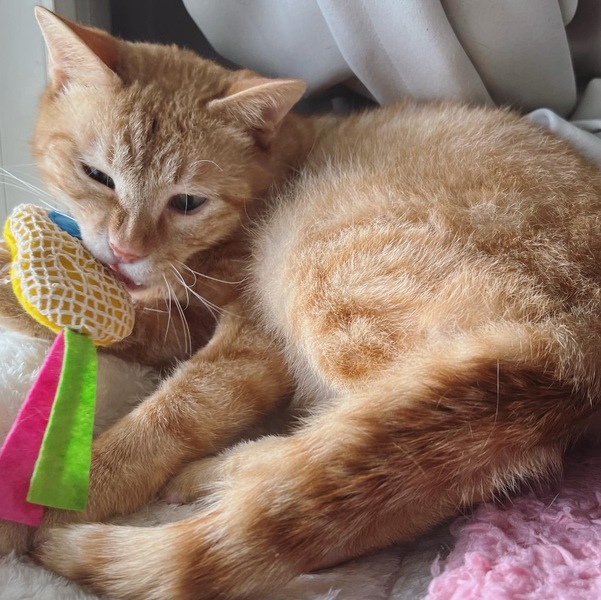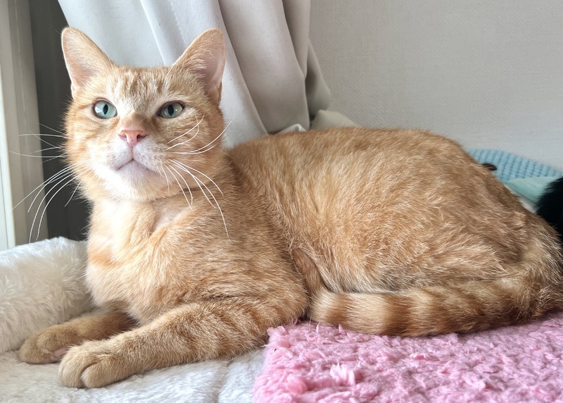 | 特徴(性格など) | 茶トラで尻尾は綺麗なストレート 気弱な所があるので人や家に慣れるまでは ビクビクしたり たまにシャーをしてしまうこともありますが 基本的にとても穏やかな性格で 撫でられるとすぐに喉をゴロゴロ鳴らし もっと撫でてとしてきます。 喋りかけると子猫のような可愛い声でお返事してくれる事も 抱っこや爪切りもさせてくれます。 猫じゃらしでも遊びますが のんびりと寝ていることが多いです。 猫同士の付き合いも上手で猫も大好きなので 先住猫がいるおうちでも大丈夫です。 家や人に慣れるのに少し時間がかかるので 気長に見守ってくださる方を希望 |