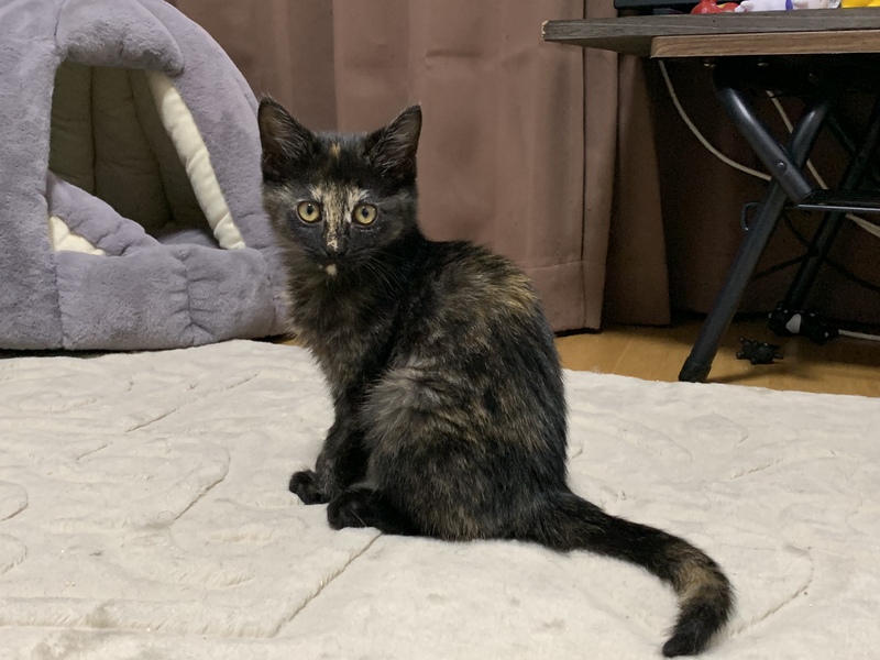 | 特徴(性格など) | サビの仔猫、遊びたい盛りの女の子、先住猫さんのいる家庭が希望です。 | ||