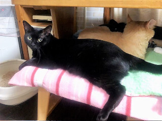 | 特徴(性格など) | 仮名を『くろにゃ』と言います。 黒猫の男の仔。 センター収容猫です。 ちょっとおとぼけな表情が愛らしい黒猫の男の仔です。 本来はフレンドリーな性格なのですが、投薬が続いたことがきっかけで、少し警戒心が芽生えてしまいました。 撫でようとすると察知して離れていってしまいます。 でも寝ている時やリラックスしている時は、撫でさせてくれる時もあります。 食いしん坊くんで、大好きなウェットフードを準備している時は自らすり寄ってきてくれます(笑) 足元でスリスリしたり、大きな声で「早くちょうだい!!」と催促をしたり。 今はそういう時だけ甘えてくる調子のよいくろにゃですが、おうちの仔になり、安心できる環境とわかれば、少しずつ以前のようなスキンシップも復活するかもしれません。 くろにゃの胃袋を掴みつつ、スキンシップは怖くないよと、ゆっくり信頼関係を築いていただけたらと思います。 また、もし距離が縮まらなくても、くろにゃのすべてを愛おしく思ってくださるご縁があれば嬉しいです。 他の猫達とは友好的関係を築くことができ、シェルターではいつも誰かと一緒にくっついて寝ています。 少し遠慮がちなところもあり、優しい性格の仔なので、色々なタイプの仔と仲良くできるようです。 人見知りをしてしまうので、隠れてしまっておとぼけの可愛いお顔が見られないときもあるかもしれませんが、 是非!くろにゃに会いにいらしてください。 お見合い大歓迎です。 【またたび家での白血病キャリアの治療】 生活の質(QOL)の維持/定期的などうぶつ病院での健康チェック/ 免疫アップに役立てているD-フラクションプレミアム(動物用栄養補助食品)(1日1回~2回食餌に混ぜて毎日給与。)/ 細胞賦活作用と炎症を抑える作用に役立てているルミンAもしくはインタベリーアルファ等を与える場合もあります。 【猫のFeLVキャリアとは?】 白血病でも健康管理をすれば一緒に暮らすことが可能です。 以下のリンクからご覧ください。 http://www.catvirus.jp/home/felv/index.html 【医療処置情報】これから実施のも含まれます *健康チェック *3種混合ワクチン接種 (年1回定期的にしております。詳細はお見合い時にお知らせいたします) *ウイルス検査実施(FIVは陰性.FeLVは陽性) *検便実施 *駆虫薬投与(レボリューション、ドロンタール) *マイクロチップ装着 *不妊・去勢手術 |