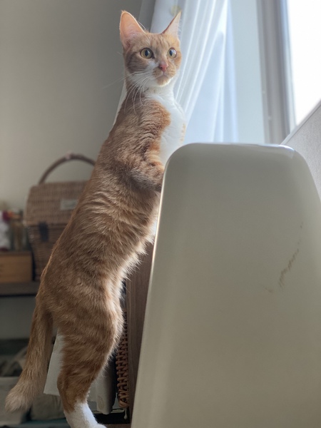 | 特徴(性格など) | スラッと手足が長く、白っぽい茶トラに白靴下がかわいいです。おいで、というと寄ってきて撫でるとゴロゴロ喜びます。あまり動かず、とても大人しく、遊んでもじゃれません。鳴くのは空腹の時くらい。 | ||