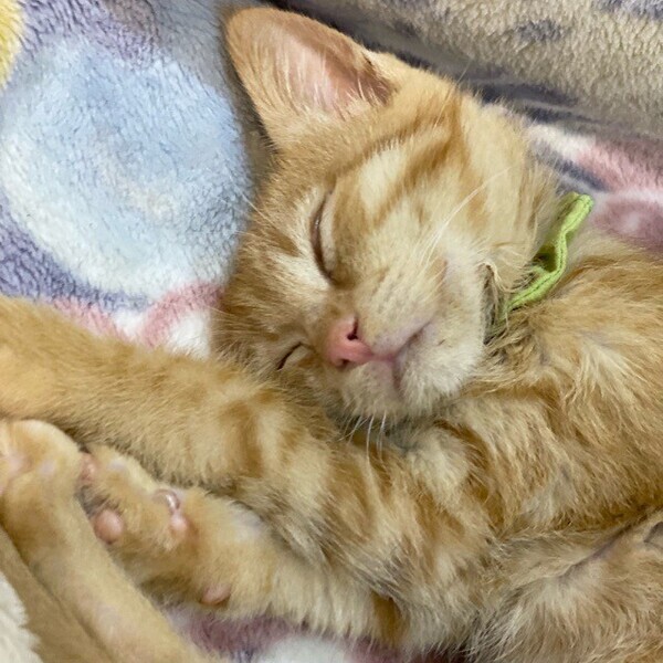| 特徴(性格など) | 兄弟姉妹たちの中でもちょっと出遅れる「コニファー」くん❤ 隅っこに潜り込んで爆睡Zzz 気付けば、みんなで大好きなパウチタイム♪慌てて、駆け寄ってみんなの仲間入り♪ おっとり甘えん坊です。 現在、ドライフードを24時間の置き餌として栄養補給、水分補給のため一日4回パウチを与えています。 <推定誕生日:10月中頃> |