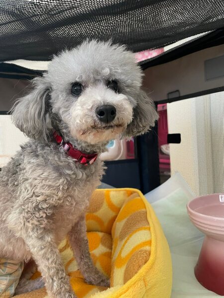 | 特徴(性格など) | トイプードルの女の子、パフェちゃんです。 被毛の色はシルバー2,7キロです。 7歳です。 抱っこ大好き!撫でてもらうと、しっぽビュンビュンが可愛いです。 わんこよりも人が好き!のようで… おじさまキラーです^^ おトイレは、おしっこはほぼトイレでできます。 ご飯の時間になると、活動開始「くださーい」と後ろをついてまわります。 しっかり食べるので食の心配はありません。 熟年夫婦にも、飼ってもらえます。 |