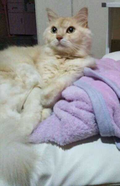 | 特徴(性格など) | 最初は怖がりますが、慣れると穏やかな性格で、おいでと呼ぶと、すぐに来て、撫でるとすぐゴロゴロ言うような優しい性格です。 遊んでもらうのも好きで、高い所も問題なく登れます。 長毛種で綺麗なベージュのような色をしております。 ダニ、ノミ駆除済み。 去勢、ワクチン済み。 健康診断を受けて良好な状態で預かりました。 体重は3.5kgくらいです。 一般的にはシニア猫ですが、成猫と変わらず、体力などの衰えは感じません。 フードの好き嫌いもほとんどありません。大きな病気にもかかったことがなく、健康な猫です。 |