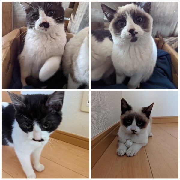 | 特徴(性格など) | 白黒♂ 1.9kg(募集中です) 茶色♂ 1.8kg(里親決まりました) |