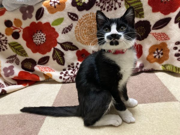 | 特徴(性格など) | ☆☆☆ご希望の方は、以下のアンケートフォームにご記入の上、送信してください☆☆☆ ねこ親希望アンケート→ http://chibawan.net/contactform_cat 【猫No】 3443 【愛称】 のりこ 【性別】 メス 【年齢】 推定4ヶ月齢(2022/1現在)(2021/9頃生) 【毛色】 黒白 【体重】 1.65kg (2022/1現在) 【状態】 ワクチン接種済(2021/12/18)、血液検査(エイズ(-)・白血病(-))、駆虫済(ノミダニ、疥癬)、トイレ習得済、不妊手術済、マイクロチップ登録済、骨折治療歴あり 【保護場所】千葉市 【日記】 http://sakuranouchi.blog.fc2.com/ さくらのおうち https://www.instagram.com/sakuranouchi/ Instagram 【経緯】 千葉県動物愛護センターより引き出し 【性格】 お髭模様がチャームポイント、黒白ハチワレの元気いっぱいな女の子です。撫でるとゴロゴロが止まらない甘えん坊で、人にも猫にもよく馴れています。仔猫らしく好奇心旺盛ですが、来客の気配にサッと身を隠したり、怖がりで小心者な一面もあります。預り宅ではいつも誰か(人や猫)のそばで過ごしており、1匹で取り残されると寂しがって悲壮な声で鳴くので、一緒に遊べる先住猫がいるご家庭か、お留守番の短いご家庭が向いていると思います。めだったイタズラをすることはなく、仔猫としては落ち着いているタイプではありますが、仔猫だけに思わぬところによじ登ったり、小物を転がして遊んだり齧ったり等しますので、誤飲・誤食等の事故が起こらないように安全に配慮した環境作り(小物や紐状の物は片付ける等)をお願いします。寂しがり屋で遊び盛りな仔猫ですので、のりこちゃんと一緒に遊んだりスキンシップを取る時間を惜しまないご家庭とのご縁を希望いたします。のりこちゃんの日常の様子はInstagramでご紹介しておりますので、ぜひ一度覗いてみて下さい。 【補足事項】右大腿骨を骨折、右前足の指2本を欠損した状態で愛護センターに収容されていましたが、愛護センターから引き出した後に病院で整復手術を受け、怪我は完治しています。 【その他】猫に合った生活スタイル、終生飼養、完全室内飼育、脱走防止対策、定期的なワクチン接種などの健康管理、定期的な近況報告をお約束いただけるご家族で、アンケートに快くお答え頂ける方からのお問い合わせをお待ちしております。お届けの範囲は、猫の負担を考慮して千葉市から車で90分程度の範囲を希望します。 |