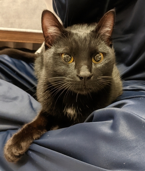 | 特徴(性格など) | 黒猫の男の子で、胸元とお腹に白が少し入っています。おヒゲも肉球も真っ黒で、幸運を運ぶカラス猫ちゃんです☆ | ||
