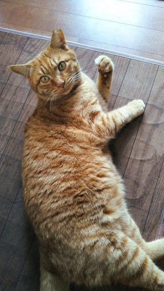 | 特徴(性格など) | 小林まことさんの漫画『WHAT'sマイケル』の主人公猫にそっくりな茶トラ柄の雄猫。性格は明るくすなおでよく食べ、よく甘えます。もと飼い猫なので人懐こく、物おじしません。誰にでも足元にきて頭をすりつけて甘え、抱っこされると喉を鳴らしてとても喜びます。去勢♂らしいかわいい猫です。「猫を飼いたいけど仔猫から育てるのはちょっと…」という方や、はじめて猫を飼ってみようという方に向いていると思います。 |