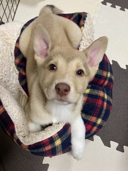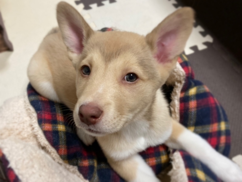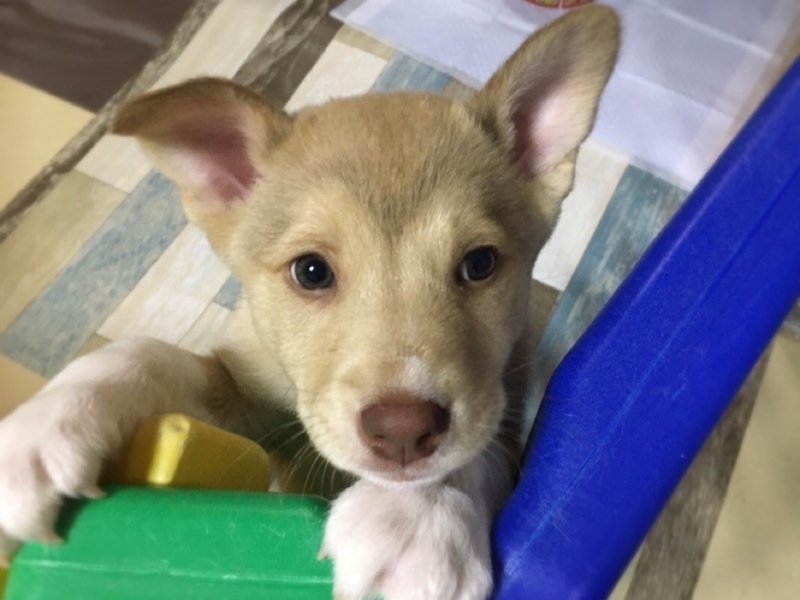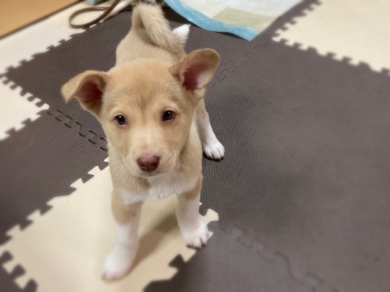 | 特徴(性格など) | 【仮名】でんでん 【生年月日】推定2021年11月初旬頃生まれ 【種類】MIX 【サイズ】親犬は不明ですが、成犬時は中型犬(13〜16kg)ほどを予想しています。 【毛色】フォーン&ホワイト 【性別】オス 【去勢】未(適正時期に必ずお願いします) 【ワクチン】済 【駆虫】アドボケート、ドロンタール、ドロンシット済 【健康状態】食欲もあり元気です。 【性格】一見おっとりした性格ですが兄弟犬とは子犬らしく戯れあっています。おもちゃはなんでも好きです。まだやんちゃなところがあり人に飛びついてきたり、甘噛みもあります。抱っこされるとそのまま寝たり、眠くなると膝の上に乗ってくる甘えん坊です。 トイレは広いところになると8割くらいの成功率にさがりますがトイレに戻れることが増えました。うんちはほぼトイレに戻れます。 おすわりもできるようになってきました! 話しかけたり、色々な音に対して首を傾げる仕草がとってもかわいいです! |