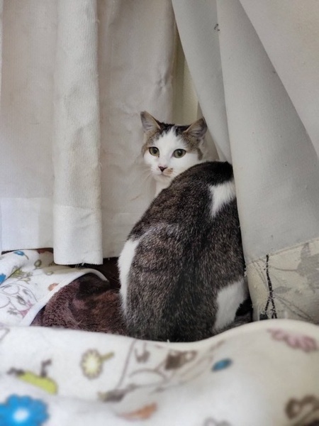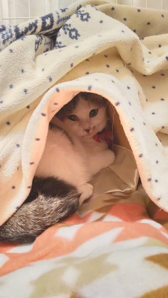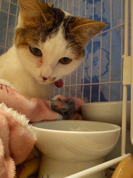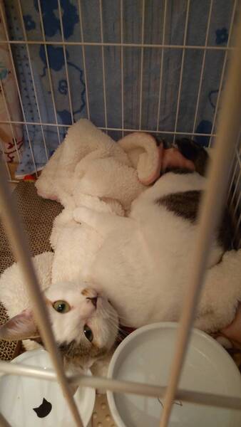 | 特徴(性格など) | まん丸プリティー♡ キジ白の女の子 (仮名)つるちゃん スリゴロ甘えん坊だけど、少しビビりです。 環境に慣れるまで、つるちゃんのペースでゆっくりと見守って下さい。 基本的に人も猫も大好きです。優しい女の子です。 |