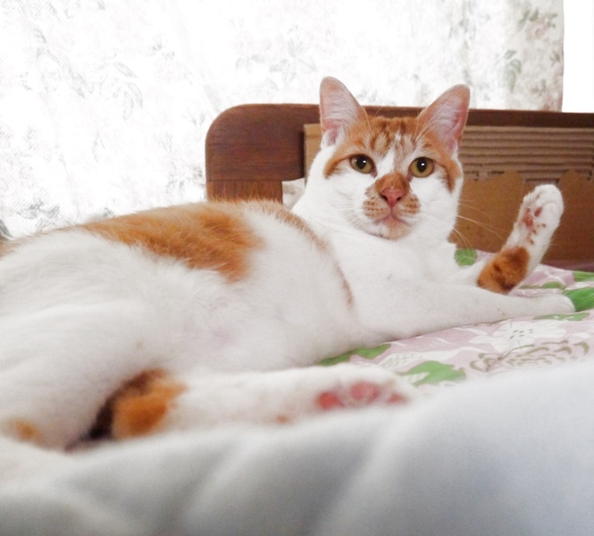 | 特徴(性格など) | 【仮名】まろん 【性格】 家族といっしょにいるのがなにより大好き! 帰ってくるのをひとりでおりこうに待っててくれます。 足音が聞こえると部屋のドアの前で待っていて、あけるとつまづきそうになるほど。 お夜食はお約束。食べると、人のベッドにジャンプして登り 枕の横にちんまり丸くなります。 遊ぶときはアルミホイルを丸めて投げると、走って(すばやくない)取りに行き くわえて戻ってきます。 私の前に歩トンと落として、また繰り返すのを待っています。 大柄ですが、体躯は短め(笑) だっこしがいのあるかわいいこです。 【健康状態】 3種ワクチン済(1回) ウイルスチェック (エイズ− 白血病-) 駆虫済 検便 血液検査 断尾手術 |