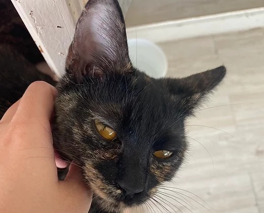 | 特徴(性格など) | 黒が多めのサビ猫のおこげちゃんです。 とても人懐っこくおっとりしている女の子で、しらすくん・いくらちゃん・つむぎちゃんと兄妹です。 おこげちゃんの得意技は、まん丸目で上目遣いでアピールをしてくることでとっても可愛いのでメロメロになります。 抱っこ、膝乗りできます◎ ぜひおこげちゃんに会いにお気軽に弐号館までお越しください。 |