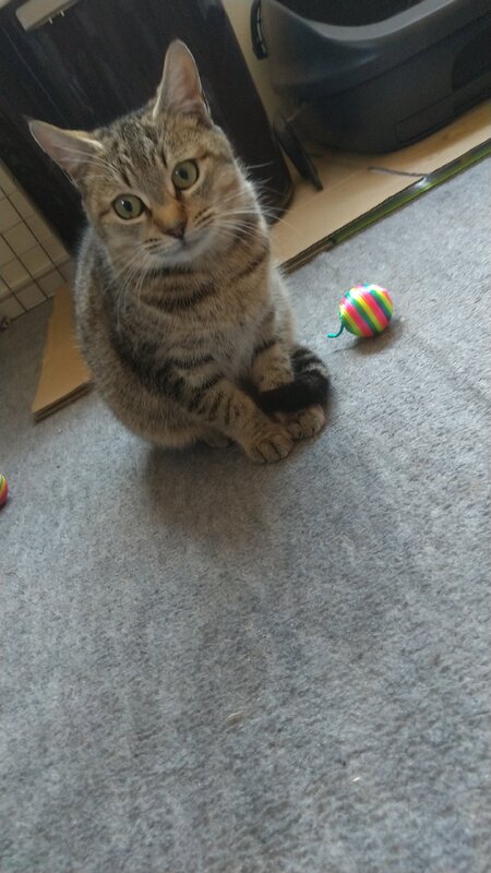 | 特徴(性格など) | 体の小さいツンデレ系なキジトラの子猫です (メスの可能性が高そうです) 運動能力は高く、窓やスチールラックに軽々飛び乗ります 兄妹猫といつも仲良く過ごしています お腹が空くと甘え声でミーミー鳴きますが、人間の手を少し警戒気味です 数日前から、指先で摘んだカリカリフードを食べられるようになってきました 今回保護した猫で一番美形です |
