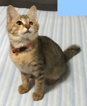 | 特徴(性格など) | 体調:元気に遊んでいて、食欲もあります。排泄も良好です。 性別:メス(不妊手術未済) 色:キジトラ 年齢:生後3ヵ月半くらい。 その他:ソマリほどではないですがやや長めで柔らかい毛。 |