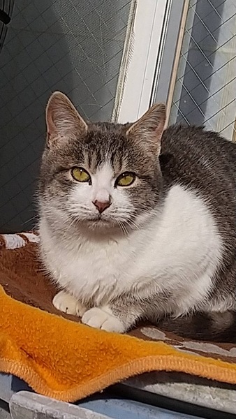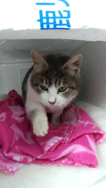 | 特徴(性格など) | 推定6ヶ月。 白とグレーのとても可愛らしい猫です。 人に慣れています。 |