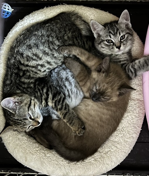 | 里親募集する理由 | 団地のベランダの下に母猫と一緒に居ました。 80代の方がご飯をあげて下さっていたのですが子猫だけでも何とかしてほしいと相談があり保護しました。 母猫は手術後(最後までどうするか悩みましたが)リリースし地域で見守っています。 3きょうだいとても仲が良いので3きょうだい一緒に引き取ってくださる方がいれば嬉しいです。 (きょうだい一緒でなくても可) |
