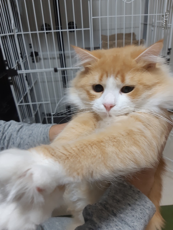 | 特徴(性格など) | おとなしい男の子です。 大型猫です。 今は3kgくらいです。 まだまだ大きくなると思います。 おっとりしていて爪切りも耳掃除もさせてくれます。 |