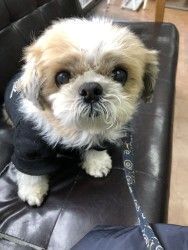 | 特徴(性格など) | ■特徴 (仮の名 どん) シーズー ♂茶白 推定年齢8才 体重8.1キロ ■今までに行った医療行為 ・6種ワクチン 12/3 ・マイクロチップ 11/24 ・健康チェック 12/16 血液検査 検便 - フィラリア - 狂犬病ワクチン 4/24 ■今後行う予定の医療行為 ・歯科処置 保護時、去勢すみ ■性格、暮らし ・ケージ内で留守番、就寝ができます。 ・他犬、猫ともそつなく過ごせます。 ・シート認識は少しあり。 ・重度のアトピー性皮膚炎のため皮膚ケアが必要です。 |