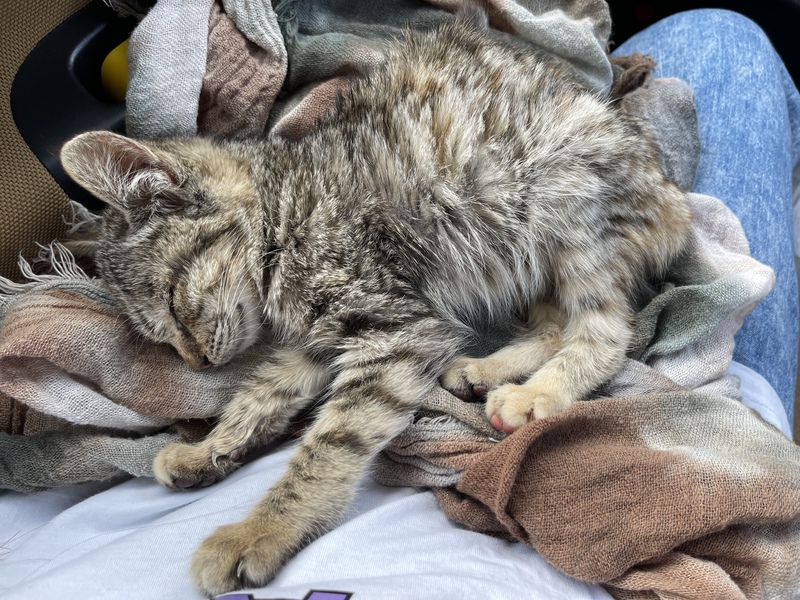 | 特徴(性格など) | 薄いキジトラ柄のかわいい女の子です。 とても元気です。 |