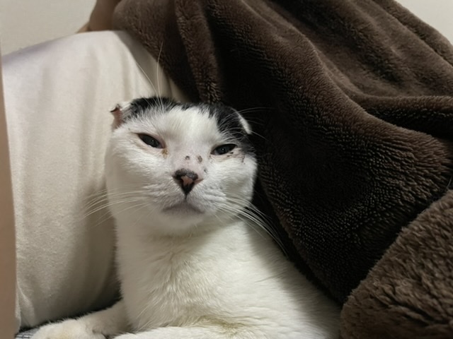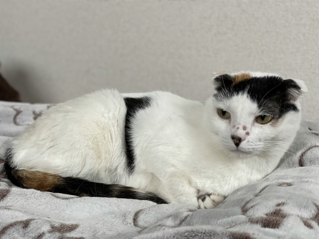 | 特徴(性格など) | スコティッシュの血が混じっている 白三毛のミミーちゃん。 とっても甘えん坊で寝る時は毛布の中に入るか 毛布の上から身体にペタっとくっついて 寝ます 猫相手にも優しく威嚇することもなく マイペースに生活しています! 猫飼育初心者の方も多頭飼いのかたにも 向いていると思います。 |