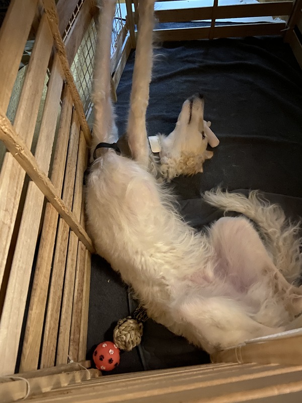 | 特徴(性格など) | 犬種:ボルゾイ 体重:約27キロ 毛質:短毛・パーマ超 毛色:クリーム 飼育方法:室内飼い 〜性格〜 大きな音や初めての場所に不慣れな怖がりさん。大人の男性に唸ることが数回ありました。 女性やお子さんに噛み付いたり吠えることはありませんでした。 まだ子供なのでいろんなものを噛んで確かめることがあります。大切なものは届かない所に保管してください。 〜お散歩について〜 朝晩のあ散歩は決まった時間に行くことが多く、”お散歩まだだよー!”とアピールすることがあります。 〜ご飯〜 ドックフードはロイヤルカナンのマキシパピー・コストコのフードを混ぜて与えています。割合は半々。 散歩の後2回、各450g与えています。 おやつは1〜2日に1回、おもちゃ(コング)に入れて与えています。 〜病気について〜 今までで大きな病気にかかったことはありません。 目ヤニが出やすい子です。定期的に取っています。 風邪をひいたことはありません。 〜しつけについて〜 おて・おかわり・おすわり・まて・よし 上記に関しては日常的におこなっています。 しつけがしっかりできるまでは他のわんちゃんには十分ご注意ください。 ※他のわんちゃんに怪我をさせたことはありません。 |