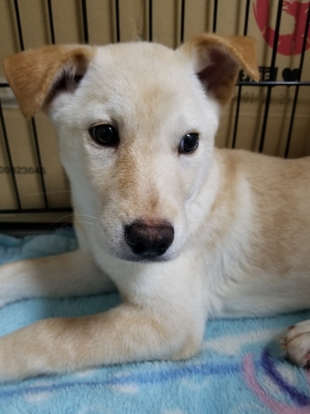 | 特徴(性格など) | 控えめな性格です。 他の犬猫問題なし。 無駄吠え、夜鳴きなし。 垂れ耳だけ濃いアイボリー、体はうっすら白。 |