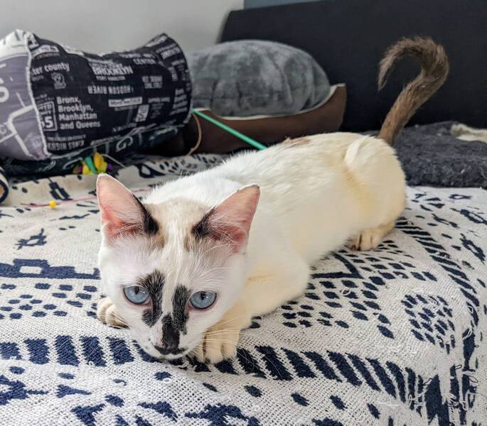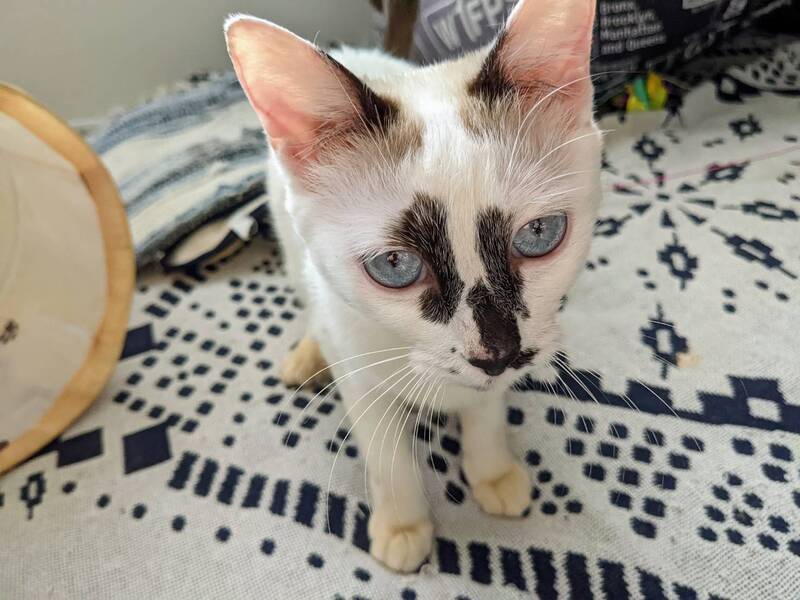 | 特徴(性格など) | ◆つららちゃん 人が大好きなシャム風の女の子 ○沖縄県の多頭飼い崩壊現場から、愛護センターに引き出されたところを保護しました。 ○推定8ヶ月くらい(2021年12月下旬時点)のシャム風の女の子です。体重は2.2kg(2022年1月15日時点)です。 ○ブルーの綺麗な瞳と、お顔の独特な模様がチャームポイントです。 ○尻尾は途中で少しだけ鍵になっていますが、長いです。 ○同じく里親募集中の「はなしずく」とは姉妹で、一緒に仲良く暮らしています。 ○人間が大好きで、すぐにそばに寄ってきてゴロゴロと喉をならしたり、お腹を見せて「なでて」と催促します。 ○抱っこも大好きです。 ★ワクチン1回接種済み、不妊手術済み。 ★猫エイズ、猫白血病ともに陰性。 ○YouTubeにも動画をあげています。こちらもご覧下さい。 https://youtu.be/qQjCMA8YaNE ○1/23(日)開催の譲渡会に参加予定! 下の要項をお読みいただき、ぜひ会いに来てください♪ ☆★☆★☆★☆★☆★☆★☆★☆★☆★☆★☆ ~1月23日(日)荏田にて譲渡会開催!~ ◎場所・・「島忠 荏田店」 神奈川県横浜市青葉区荏田西1ー3ー14 田園都市線「江田」駅より徒歩約7分 246号線江田駅交差点そば ◎日程・・1月23日(日)(雨天決行) ◎時間・・13時から16時 【15時30分受付終了】 (会場に利用可能な無料駐車場がございます。そちらをご利用くださいませ。) 今回はコロナ対策のため、制限を設けての開催となります。 *3密対策のため、当日12時30分より整理券を配布いたします。 *各回15分 *各回先着3組様 *参加の際は、マスクの着用、アルコール消毒のご協力をお願いいたします。 *当日は検温の上、体温が37度以上の方はご参加いただけません。 *混雑状況により、中止させていただく場合がございます。 ※参加予定の犬猫は体調により参加できない場合があります。ご了承ください。 ☆★☆★☆★☆★☆★☆★☆★☆★☆★☆★☆ |