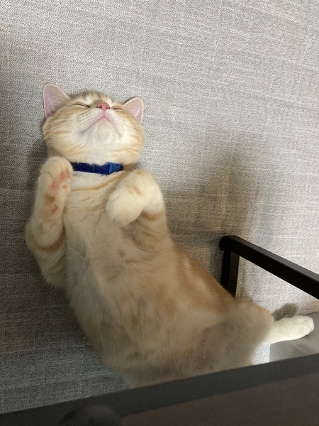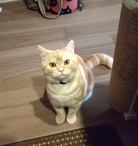 | 特徴(性格など) | レッドタビー 綺麗な柄・顔をしています。 性格は人懐っこく、甘えん坊です。 2ヶ月の時に迎えて、ずっと変わらず甘えん坊です。 人の腕の中も慣れており、ご飯の気配がしたり、名前を呼ぶと、喜んで近寄ってきます。 トイレを失敗した事はなく、変な癖も無い素直ないい子です。 ボールや、紐、猫じゃらしが好きで、よく遊びます。 |