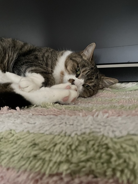 | 特徴(性格など) | 手足胸お腹が白く他はキジトラです。 少し臆病ですが穏やかで我が家の猫にはフレンドリーです。 逃げたり隠れたりする事もありますが撫でる事も出来てゴロゴロ言って最近はお腹を撫でさせてくれます。 可愛いです? |