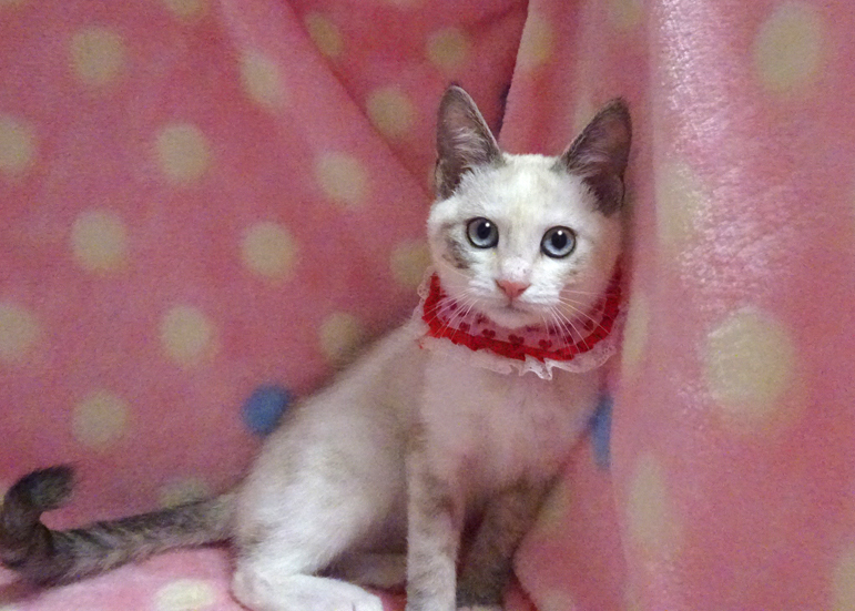 | 特徴(性格など) | 【猫の仮名】 青音(あのん)ちゃん (担当 松嶋) 【毛色・柄】 シャム系のベージュとグレー、アイランが入ったパッチリ青い目、長くて真っ直ぐなシッポ 人が大好きで、膝に飛び乗ってきます♪ 人の手をなめたり甘噛みしたり、大変な甘えたで、母親が恋しいのだと思います。 猫を飼うのが初めての方でも大丈夫です♪ 走っても大丈夫な広さのペット可のお住まいで、家族の一員として生涯大切にして下さるご家族を募集しています。 猫だけのお留守番が長時間でないご家族を募集しています。 保護主の希望により、お一人暮らし、同棲中の方、ご高齢の方には譲渡できません。 |