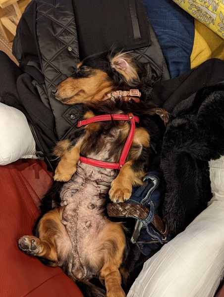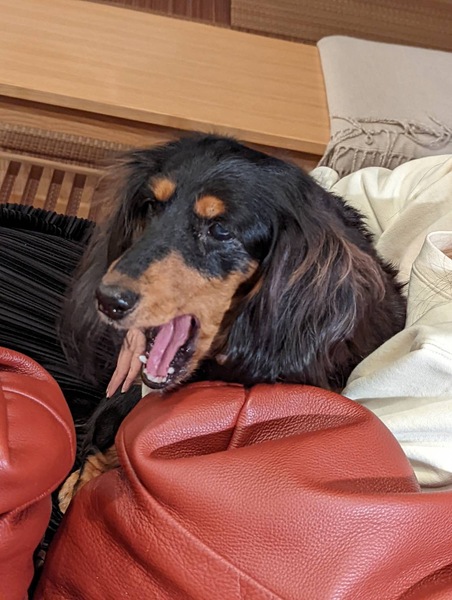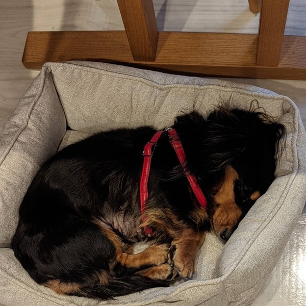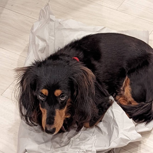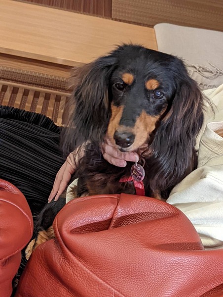 | 特徴(性格など) | 名前:マンディ 犬種:M.ダックス 性別:メス♀ 毛色:ブラックタン 年齢:10歳くらい 体重:5.4キロくらい 性格: 人が家にいるときは常に側にいたいマンディさん。 在宅で仕事をしていたら足元に、別の部屋で用事をしていたら、その部屋にずっといます。 「膝に乗せろ!ソファに乗せろ!」と、要求吠えをしますが、諦めは早いです。 通勤バッグを背負ったら散歩じゃないとわかったり、畳のところに突破できる簡易ゲートを置いてもダメといったら来ないなど、生活サイクルやルールもわかってきたので、今は、とても暮らしやすいです。 トイレは、「もう一歩前!」という失敗はありますがシートで完璧にできます。ちょっとキレが悪く、トイレ周りや喜んだとき、吠えたときはポタポタ落ちます。 散歩は、楽しくしっかり歩きます。ケンカする感じではないですが、犬や人に吠えることがたびたびあります。(ワン!と一声程度ですが) 来客には吠えます。男性にはしつこくずっと吠えています(おやつで懐柔されます) 食いしん坊です!トッピングなしのドライフードを秒で食べてしまいます。 他の犬をかわいがるとやきもち焼くタイプなので、先住犬がいる場合はそのあたりコントロールできるようお願いしたいです。 10年暮らした家族に捨てられてしまいましたが、犬生後半は今度こそ本当の家族のもとで暮らさせてやってください。 |