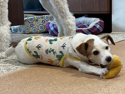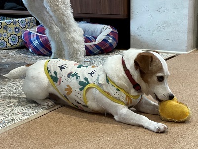 | 特徴(性格など) | ジャックラッセルテリアの女のコ。体重は7.0kg。仮の名前を「雨音(あまね)」ちゃんと名付けました。 明るく活発。ジャックラッセルテリアらしいワンコです。 性格はどちらかといえば強く,売られたけんかは買うタイプです。 散歩で他の犬に会うと,ワンワン吠えて,向かっていこうとします。 散歩は朝夕2回,しっかりと時間を掛けてしていただく必要があります。 トイレは,外でも中でもします。家の中では,基本シートの上でできます。マーキング的に,他の犬がした上にします。 フィラリアは陰性です。他に健康上の問題はありません。 |
