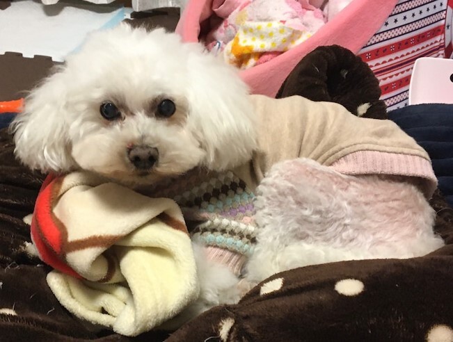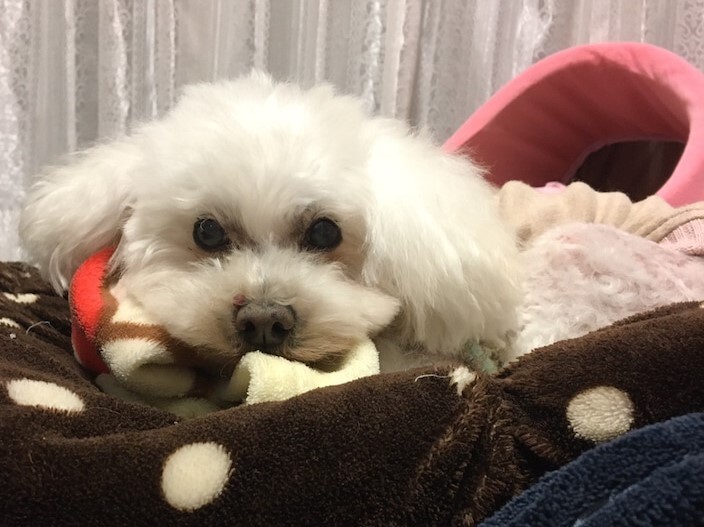 | 特徴(性格など) | トイプードルの女のコ。体重は3.8kg,毛色は白です。仮の名前を「ねむ」ちゃんと名付けました。 見ためは「ぽよよーん」としていて、性格もおーーーっとり、マイペース。だけど、芯はしっかりしています。 人は好きですが、家族さえ居てくれれば満足するタイプのようで、よその人に対してまったく愛想がありません。 お留守番がとっても苦手。預かり当初は、ちょっと、そばを離れるだけで泣き叫んでいたため、スリングに入って貰って家事をしたりしていました。 今も、泣いてしまうことがありますが、いつまでも泣き叫ぶということはなく、少し泣くとおさまるようです。 トイレはシートの認識があり、成功率は80~90%くらい。マーキングがとっても多く、ちょこちょこシートにしています。 散歩は たくさんの距離はいらないようです。ただ、歩く速度が驚くほどゆっくりなため、時間がかかります。 また、他犬が苦手。散歩で会う犬には吠えてしまいます。 先住犬に対しても強く出るところがあるため、多頭での生活は難しそうです。 一日のほとんどを静かに寝て過ごしています。オモチャ遊びもほとんどありません。ただ、何日かに1度はテンションが上がり、走り回ることがあります。 ねむさんが最も好きなことは『食べること』。とっても食いしん坊さんです。食事の準備が始まるとそばに来て鼻鳴きしています。 アレルギー体質のため、食べるものには配慮が必要です。フィラリアは陰性です。 現在は、一時預かりボランティア様宅で新しい家族を待っています。 現在の様子はコチラ → https://ameblo.jp/luke-momo1971/ |