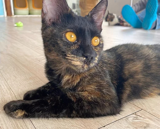 | 特徴(性格など) | 黒が多めのサビ猫のおこげちゃんです。 とても人懐っこくおっとりしている女の子で、しらすくん・いくらちゃん・つむぎちゃんと兄妹です。 おこげちゃんの得意技は、まん丸目で上目遣いでアピールをしてくることでとっても可愛いのでメロメロになります。 抱っこ、膝乗りできます◎ ぜひおこげちゃんに会いにお気軽に弐号館までお越しください。 |