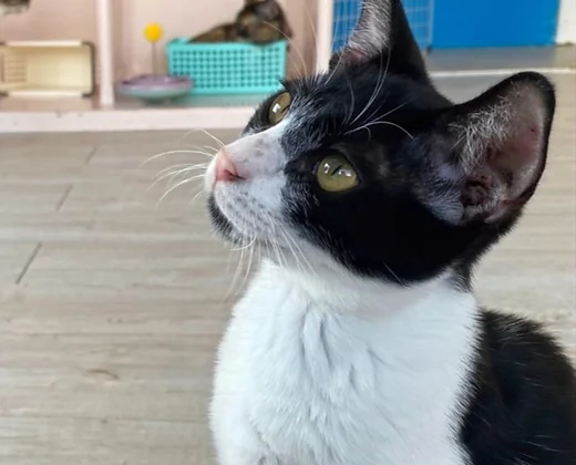 | 特徴(性格など) | 好奇心旺盛で、おもちゃや大人の猫と遊ぶことが大好きです。人にとっても懐いているので、そういう時に手を出しても噛んだりしません。やんちゃで優しい男の子ですので、ぜひ、弐号館にお見合いにいらしてください! | ||