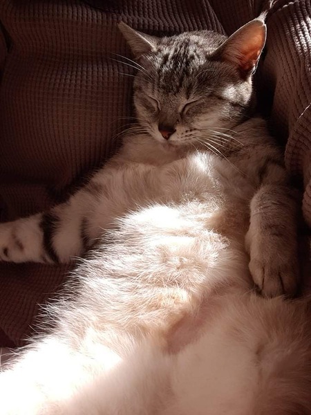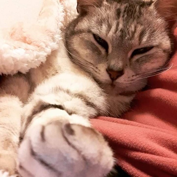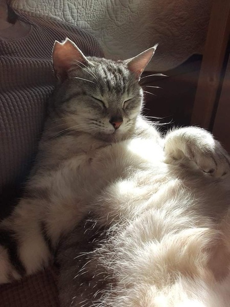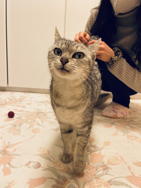 | 特徴(性格など) | 美しいシルバータビーが魅力的な美猫さんで、シルビアと呼んでいます。とても人懐こく初めてのお客様にも甘えて来る、誰からも愛される猫さんです。性格は女の子らしく穏やかで優しく、おっとりとしているので、ヘソ天で寝ていたり、香箱座りで人に寄り添ってくれる良きパートナーになってくれます。 | ||
