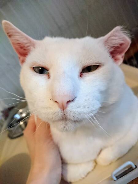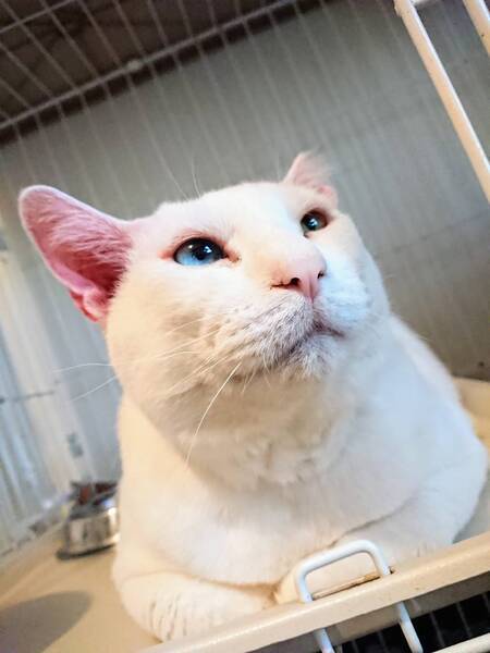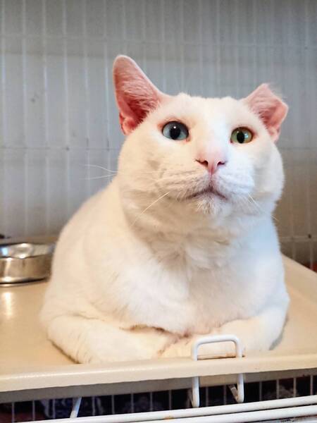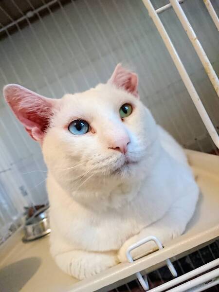 | 特徴(性格など) | ◆ワークマンくん 甘えん坊なオッドアイの巨体白猫男子 【ワークマンくんは猫白血病陽性です。いま現在はとても元気に過ごしていますが、猫白血病陽性の子がいるご家庭や、猫白血病も全てを受け入れてくださるご家族を希望します。】 ○2021年冬、福島県内の、隠れる場所も暖を取る場所もない公園で、ケガをしていたため保護されました。 ○推定5〜6歳くらい(2022年1月時点)のオッドアイ(右目水色、左目黄色)の白猫の男の子です。 ○かなりの巨体で、体重は8.1kg(2022年1月22日時点)です。 ○保護時には首半分の皮膚がケガで欠損していました。3回ほど皮膚を寄せる手術をして完治しましたが、入院期間は長期にわたりました。元いた公園は冬には氷点下10度以下まで達する場所で、戻したら凍死しかねないため、相談を受けて避難所に来ることになりました。 ○左耳がカットされているのは去勢手術済みの印です。 ○尻尾は先にいくにつれて細くなります。 ○落ち着いた大人の男ですが、甘えん坊なのでかまってアピールをしてくれます。 ★ワクチン済み、不妊手術済み。 ★猫エイズ陰性、猫白血病陽性。 ●白血病の子は本当に甘えん坊な可愛い子たちです!いっぱい遊んでいっぱい抱きしめてくれる家族を募集しています。 ☆単身、高齢のかたもご相談ください。 ★★Zoomアプリを使用して、リモートお見合いを設定することも可能です。まずはお申込みください★★ |