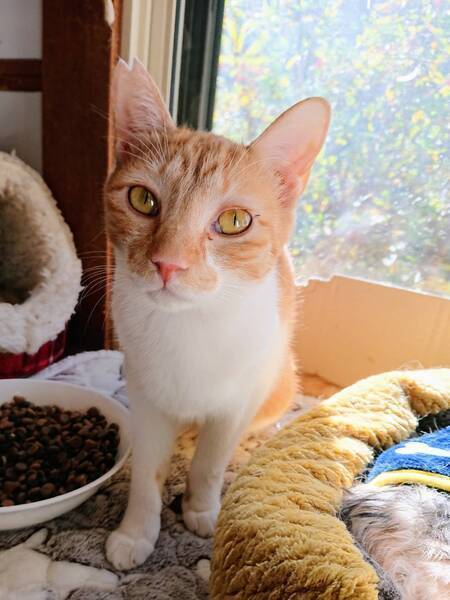 | 特徴(性格など) | ◆エシャロットちゃん 小柄な茶白の女の子(後ろ右足欠損) ○栃木県内にて保護されました。 ○年齢不明(2022年1月時点で推定2歳未満)の茶白の女の子です。 ○真っ白な胸元・お腹・手脚と、背中の真ん中の白斑がチャームポイントです。 ○しっぽは中くらいの長さです。 ○怪我のため後ろ右足を欠損していますが、自由に動き回っています。生活に支障はありません。 ○臆病な性格だけど、ナデナデするのはOKです。気持ちよさそうにしてくれます。 ○小柄だけど、おいしいご飯がとっても大好きです。控えめにちょうだいアピールをしてきて可愛いです。 ★ワクチン2回済み、不妊手術済み。 ★猫エイズ、猫白血病ともに陰性。 ★後ろ右足を欠損していますが、自由に動き回っています。生活に支障はありません。 ☆単身のかたはご相談ください。 ○4/24 (日)開催の譲渡会に参加予定! 下の要項をお読みいただき、ぜひ会いに来てください♪ ☆★☆★☆★☆★☆★☆★☆★☆★☆★☆★☆ 4月24日(日)荏田にて譲渡会開催! ◎場所・・「島忠 荏田店」 神奈川県横浜市青葉区荏田西1ー3ー14 田園都市線「江田」駅より徒歩約7分 246号線江田駅交差点そば ◎日程・・4月24日(日)(雨天決行) ◎時間・・13時から16時 【15時30分受付終了】 (会場に利用可能な無料駐車場がございます。そちらをご利用くださいませ。) 今回はコロナ対策のため、制限を設けての開催となります。 *3密対策のため、当日12時30分より整理券を配布いたします。 *各回15分 *各回先着3組様 *参加の際は、マスクの着用、アルコール消毒のご協力をお願いいたします。 *当日は検温の上、体温が37度以上の方はご参加いただけません。 *混雑状況により、中止させていただく場合がございます。 ※参加予定の猫は体調により参加できない場合があります。ご了承ください。 ☆★☆★☆★☆★☆★☆★☆★☆★☆★☆★☆ |